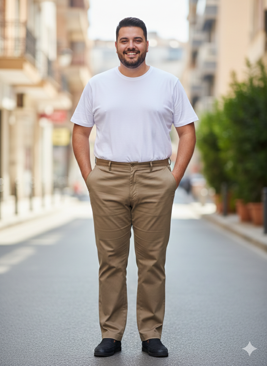 מכנסיים מידות גדולות ספורט אלגנט מקדימה רוכסן וכפתור 2 כיסים מקדימה 2 כיסים מאחורה גזרה נמוכה (בדרך כלל מתאים יותר למי הולך עם פתח המכנס מתחת לבטן) גזרה ישרה ברגליים הרכב בד 100% כותנה דק ונעים למגע מאוד איכותיים מתאימים ליום יום וגם לאירועים מיוחדים